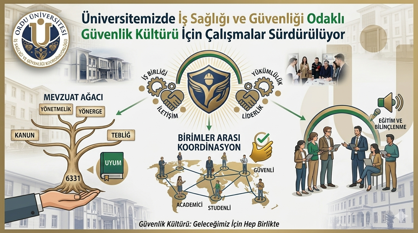 Ordu Üniversitesi İş Sağlığı ve Güvenliği Koordinatörlüğü olarak, üniversitemiz genelinde iş sağlığı ve güvenliği bilincini artırmak ve sürdürülebilir bir güvenlik kültürü oluşturmak amacıyla kapsamlı çalışmalar yapılmaktadır.